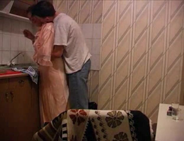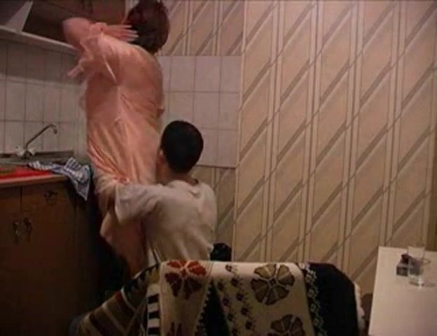 Kinky fat mature gal and young guy bang in kitchen