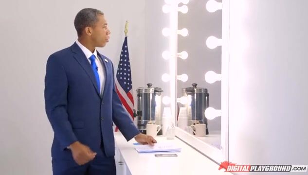 The President gets down to business with a mature blonde babe. He plows her hard and fast in a steamy interracial romp. Watch this parody unfold with a porn star cougar.